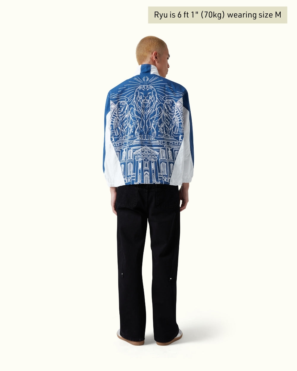 An ode to tradition and heritage, the England Track Jacket reimagines British national symbols through a streetwear lens. Features back panel embroidery of the three lions standing atop Buckingham Palace, as well as custom paneling and dual chest embroideries.